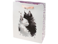 Пакет из плотной бумаги, матовое ламинирование, выборочный УФ-лак. Веревочные ручки.